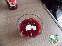 Берём стеклянную десертную чашку или стеклянный стакан и кладем пару ст. л. варенья на дно. |