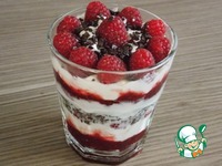 Теперь идёт слой сметаны, а на неё сверху выкладываем нашу ягоду и посыпаем шоколадной крошкой. Можно есть сразу, а можно убрать на 1 час в холодильник. Десерт готов. Приятного аппетита! |