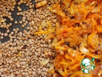 Добавить в чашу мультиварки к промытой чечевице. Я выбираю пеструю от "Мистраль" за то, что ее не надо замачивать и она становясь мягкой не теряя своей формы. |