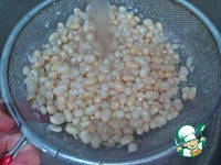 Фасоль залить водой и убрать на ночь в холодильник. К утру фасоль набухнет. |