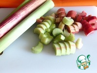Пока тесто поднимается, приготовим начинки. Итак, ревень чистим и нарезаем на кусочки. |