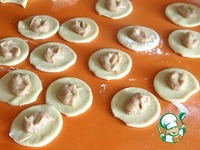 Укладывать наши "пельмешки" (или розочки, как кому больше нравится) по кругу, не очень плотно. |