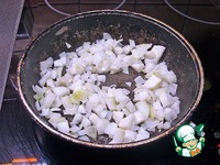 Лук шинкуем и слегка обжариваем на умеренно горячей сковороде на свином жире (его можно вытопить из небольшого кусочка сала от той же грудинки) |