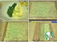 Паштет выкладываем равномерно на пленку (я использовала рукав для запекания, можно обыный пакет), слой примерно 1 см. |