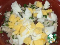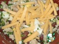 Описание: Питательный рыбный салат с отварной фасолью.