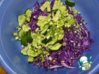 Капусту нашинковать, посолить, и слегка перетереть в ладонях. Огурцы нарезать соломкой. Соединить ингредиенты в общей миске. Добавить измельченный лук, соль, перец, лимонный сок и |