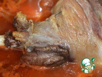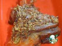 8. Готовую рульку вынуть из соуса, снова выложить в форму для запекания. Верх смазать горчицей и поставить в духовку разогретую до 200С на 5 минут. |