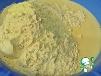 Затем добавить муку и разрыхлитель. Перемешать до однородности. |
