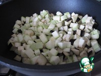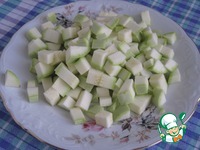 Нарежьте кубиками кабачок. |