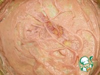 Смазываем его кетчупом и сметаной. Это сделает пирог сочнее. Прокалываем хорошенько вилкой, чтобы тесто не поднялось. |
