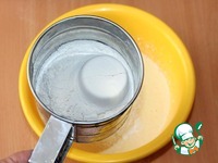 Затем в желтково-маслянную смесь добавьте просеянную муку с разрыхлителем и ванилином. Хорошо перемешайте. |
