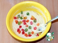 Форму (10*20) для кекса смажьте маслом, на дно можно положить немного цукатов, чтобы украсить кекс. |