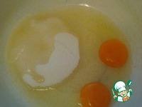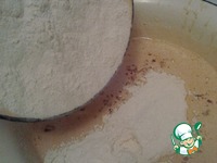 Во взбитые яйца добавить кофе растворенный в теплой кипяченой воде, масло и мед. Перемешать. |