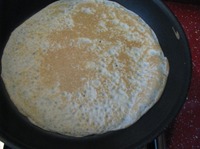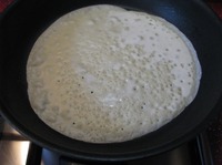Разогреваем сковороду, половничком наливаем тесто и распределяем по всей сковороде. |