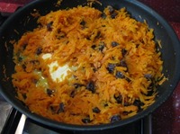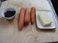В сковороду выкладываем морковь, слегка подсолив. наливаем 100 мл. воды и тушим до выпаривания воды. Добавляем сливочное масло и изюм, доводим до готовности. Морковь должна быть слегка поджаренная. |