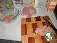 Подготавливаем необходимые продукты, рубим куриную грудку на маленькие кусочки. |