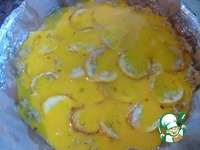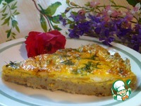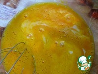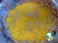 Гречневую основу потыкать вилкой и налить сверху немного омлетной смесью. |