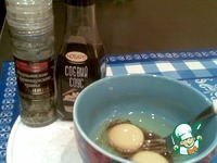 В миске смешиваем яйца, соевый соус, смесь специй и щепотку соли до получения однородной массы. |