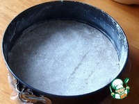 Разъемную форму для торта застелить бумагой для выпечки, смазать маслом и посыпать мукой. У меня форма диаметром 25 см. |