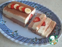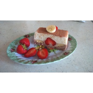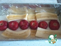 На загустевшую белую массу положить половинки банана и клубнику... |