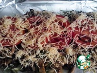 Посыпаем сыром) Можно и сыра больше) Отправляем в разогретую до 180 градусов духовку на 20-25 минут. |