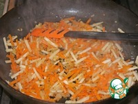 Добавить морковь с сельдерем и потушить до полуготовности. |