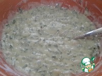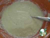 Смешать яйца, соль, сахар, специи. Добавить муку, соду, разрыхлитель, кефир и хорошо перемешать. Из специй я использовала перечную смесь и куркуму для цвета. |