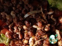 Остывшую фасоль и лук отправляем в общую миску. |