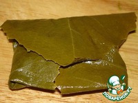 Чайной ложкой выложить фарш на листья, свернуть конвертиком. |
