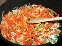 Подготовленные овощи, кроме шпината, немного обжариваем на растительном масле и тушим под крышкой до мягкости (минут 10). |