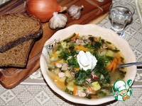Суп готов. Подавать можно со сметаной. Очень вкусно с гренками из черного хлеба. |