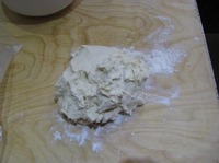Достаем тесто, тесто получается вязкое. |