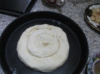 Выложить в форму начиная с центра в виде улитки, швом вниз. |