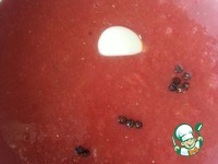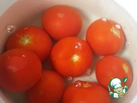 Для начала приготовим томатный сок в соковыжималке. Для этого, помидоры помыть и положить в кипящую воду на 1 минуту. Очистить шкурку и разрезать пополам, чтоб удобно было класть в соковыжималку. |