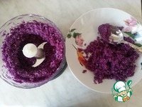 Краснокачанную капусту измельчить в блендере, отжать сок через 4 слоя бинта или марли. Это синяя "краска". |