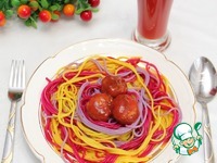 Описание: Это необычное блюдо придаст вашему праздничному столу красочности и поразит ваших гостей своей креативностью и добавит положительных эмоций. Это блюдо лучше подавать с томатным соком, какое же спагетти без томатов?