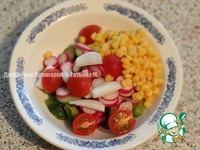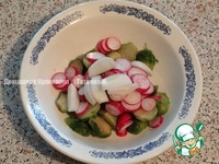 В тарелку выложить капусту, редис - кружочками, лук - дольками; |