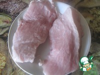 Мясо нарезаем плоским большим куском, я использовала нежирную свинину |