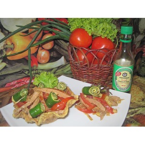 Описание: В этом салате с мясом привычные отварные яйца заменены яичными блинчиками, которые придают салату оригинальность. Жареные яйца, напоминающие тончайший омлет, нарезаются соломкой и добавляются к мясу и помидорам и заправляются заправкой с соевым соусом
