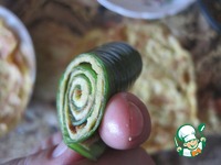 Яичный блинчик нарезаем с размером пластинки зеленого лука |