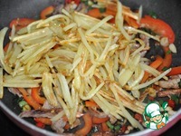 Кладём жаренный картофель. |