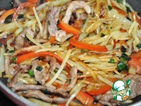 Описание: Некоторые китайские блюда меня немного удивляют. Ну вот, например, это блюдо я бы отнесла к горячему второму, и, тем не менее, у китайцев его подают как закуску и называют горячим салатом. Его готовит повар-китаец в закусочной "Китайка", напротив моего дома. Мужская половина моей семьи от него просто в восторге! Готовится быстро. Это именно то, чем вы можете удивить неожиданных гостей!