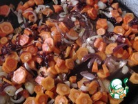 На растительном масле обжарить лук и нарезанную кружочками морковь. |
