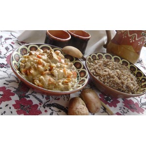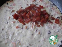 Добавить бульон, затем сливки, довести до кипения и добавить курагу. Тушить на маленьком огне 10 минут. |