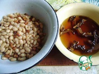 Сначала займемся предварительной работой. Фасоль замочить на ночь и сварить. Горсть сухих грибов замочить в воде на 2 часа. |
