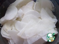 Чистим дайкон. Измельчить блендером кружками или полу кружками, в зависимости от толщины дайкона. |