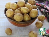 Молодой мелкий неочищенный картофель тщательно промойте водой. |