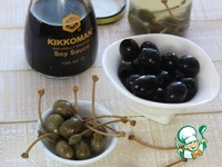 Приготовьте маслины без косточек и каперсы. Маслины нарежьте на кружочки. |