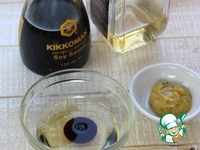 Сделайте заправку. Смешайте растительное масло, соевый соус Кikkoman, горчицу, белый винный уксус. |