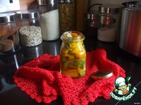 За 5 минут до конца варки бросить 8-10 горошин душистого перца и 4-6 зубчиков чеснока. Разложить в стерильные банки, закатать. |
